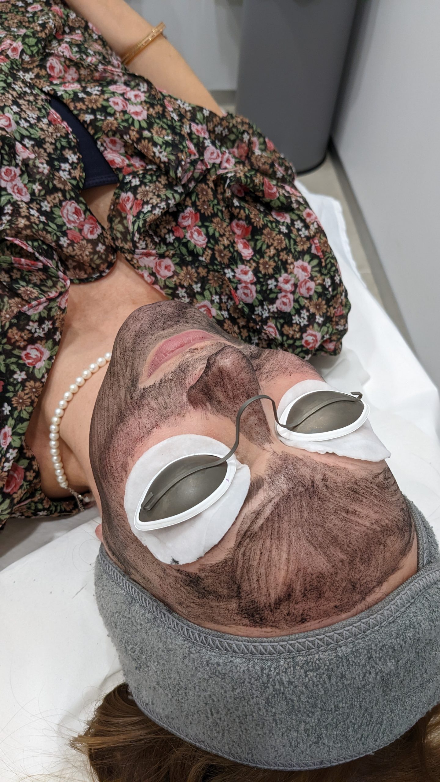 So after Lauren removed my make up (They use Murad, Skinceuticals & Dermaquest products) She did a cleanse laser which preps your skin for the mask, she then applied the carbon mask & kindly took a photo because at this point I couldn’t see a thing as I was wearing the eye mask. The next stage is called a Q switch laser which is run over the skin & actually removes the carbon mask. It clears pores,stimulates skin, exfoliates the upper layers of skin & breaks down any skin pigmentation.